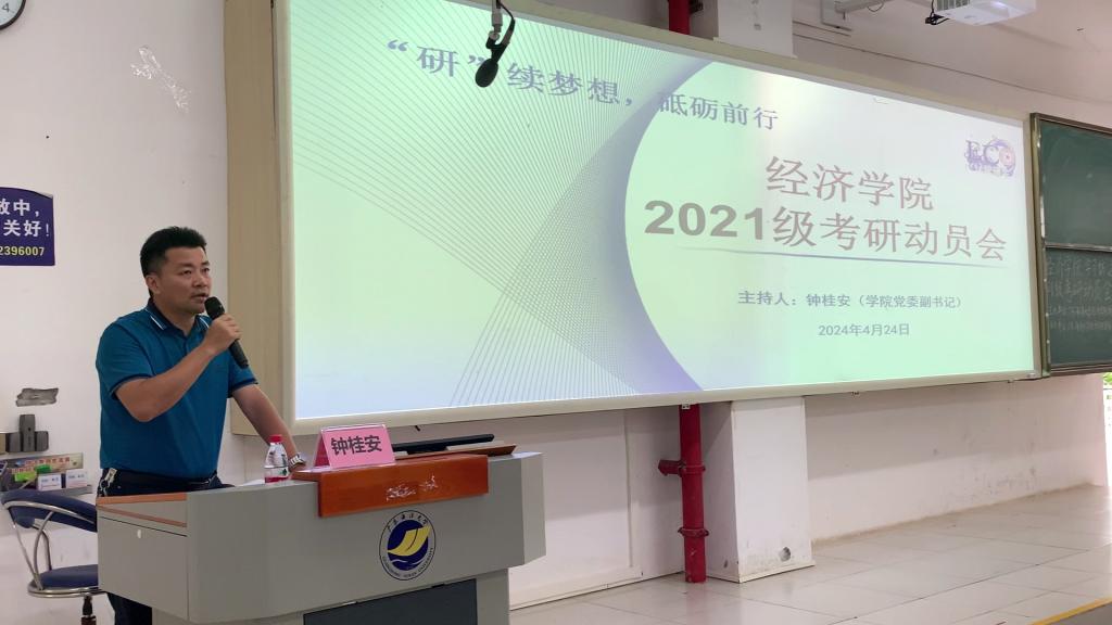 为早动员、早部署,帮助考研学生合理规划时间,加强考研自信心,促进高质量就业,4月24日,william威廉中文官网在明德楼B5201多媒体室召开了2021级学生考研动员会。学院院长陈伟,正处级辅导员、党委副书记钟桂安,系主任、院办主任、辅导员、班主任以及2021级本科生和二年级研究生参加了会议。