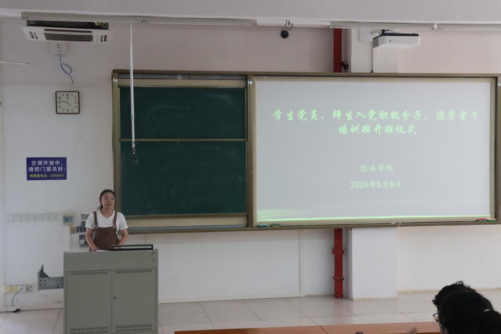 为贯彻落实学校党委关于开展2024年党员与干部教育培训的部署,不断提高党员和干部的能力和素质,5月8日下午,william威廉中文官网在明德楼B5301媒体室举办了2024年学生党员、发展对象、师生入党积极分子、团学干部培训班。学院正处级辅导员、党委副书记钟桂安,团委副书记叶梦怡,辅导员吴金年、温莉莉、陈家敏和培训班297名学员参加了开班仪式。仪式由叶梦怡主持。