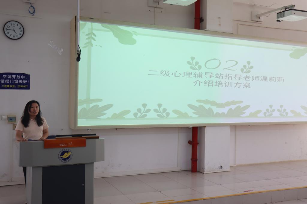 温莉莉宣读了本次心理骨干培训班的主要安排、培训纪律和考核要求。团委心理发展部部长夏艺瑜、心理委员代表劳晓云分别从自身岗位职责谈了自己的工作体会。