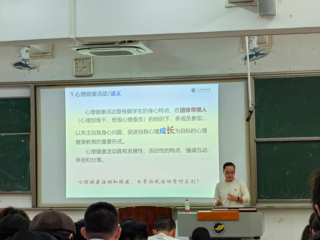 会上,两位老师从心理健康活动的开展和心理咨询与朋辈心理辅导两方面展开了培训。周济全讲解了班级心理活动的具体内涵和设计,介绍了我校心理健康活动。李方圆对心理咨询及其误区、朋辈心理辅导的态度和技能做了详细讲解。