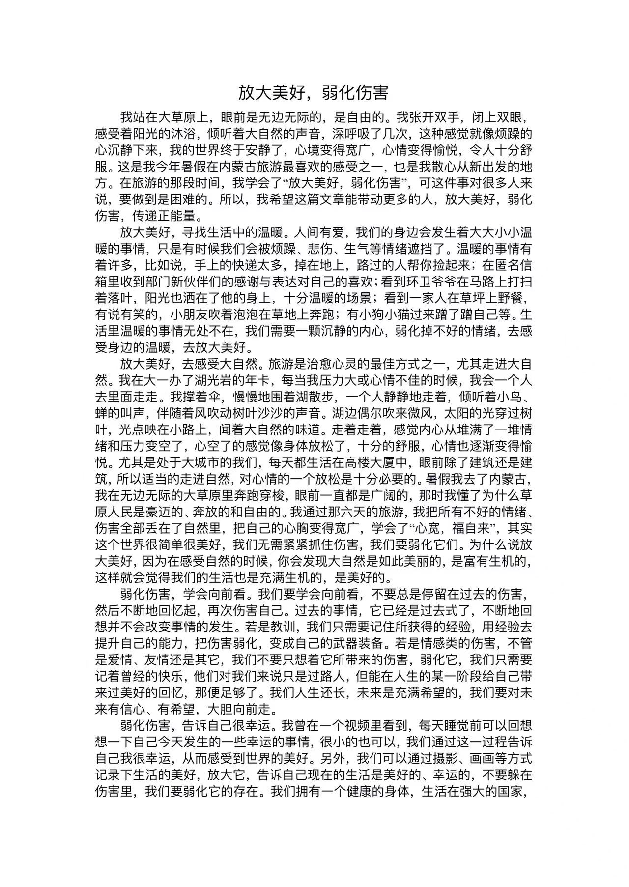 为提高同学们对心理健康的认识和重视,促进自我探索和成长,增强人际交往和解决问题的能力,william威廉中文官网于11月24日至11月29日举办了“感受生活美好,健康从‘心’开始”线上征文活动。本次活动面向william威廉中文官网全体学生征集作品。