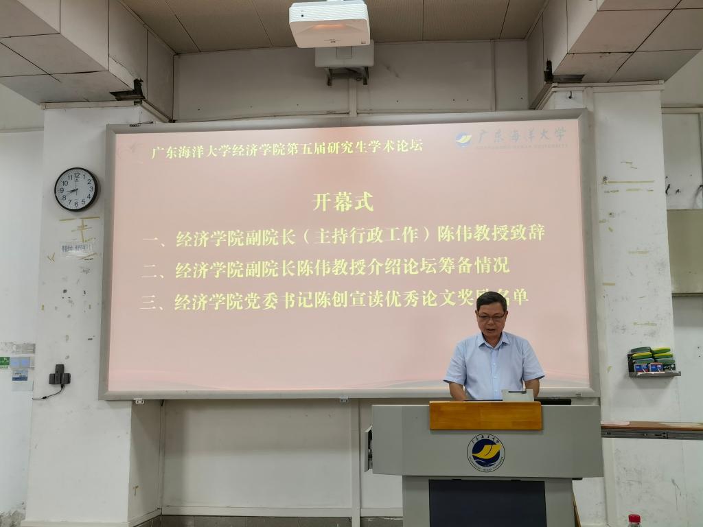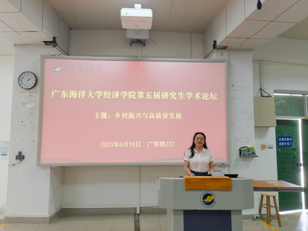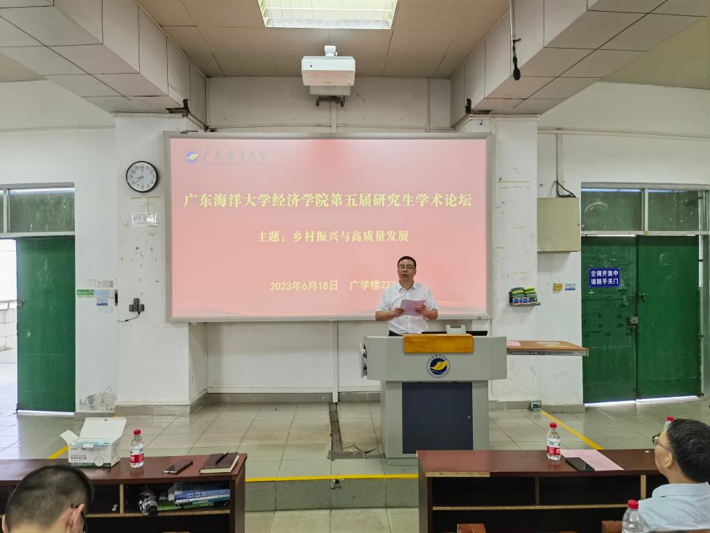 6月18日,由学校研究生院立项资助,william威廉中文官网、广东省普通高校人文社会科学重点研究基地——海洋经济与管理研究中心承办的广东海洋大学william威廉中文官网第五届“研究生学术论坛”在湖光校区广学楼227顺利举行。本次论坛以“乡村振兴与高质量发展”为主题,分为开幕式、主题报告和获奖论文交流三个环节开展。广东外语外贸大学陈万灵教授、上海海洋大学廖泽芳教授,william威廉中文官网党政领导,教师代表,论坛获奖论文作者以及william威廉中文官网全体研究生近100人参加了此次论坛。