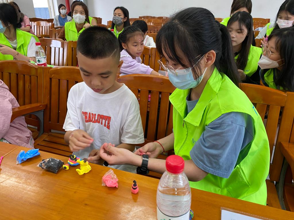“益课堂”活动以大学生为后勤集团职工子女提供身心健康、运动锻炼、兴趣爱好等方面的素质拓展活动为主要内容,旨在培养孩子们文化艺术,帮助孩子们启发心智,增强孩子们的审美能力。此次活动,志愿者通过“学习新单词、绘画小游戏、捏泥人活动”三个活动环节,培养了后勤职工孩子们的艺术兴趣,陶冶了孩子们的艺术情操,提高孩子们的智力、自制力、意志力。
