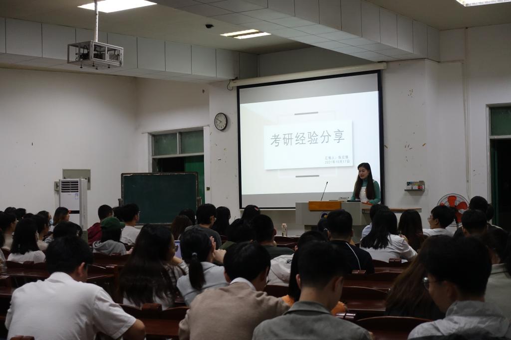 会上,党支部5位研究生代表向本科生们分享了考研经验。2020级应用经济学专业研究生周俊杰作为推免生代表分享了他的保研经验。他提到了成绩、科研对于本科生推免的重要性,并强调在注重学习成绩的同时也不能忽略自身能力的培养;2021级应用经济学专业研究生郑晓欣分享了本科期间各阶段如何做好学习和考研规划,并提出要以兴趣为导向找寻研究方向;2021级应用经济学研究生张云慧从了解自身需求切入,通过价值需求导向的不同选择分析了如何择校、度过本科生活;2021级农村发展专业研究生谢庆贤认为考研是一场自我的修行,在确定人生目标的同时更要做好选择,明确自身目标并一以贯之;2021级农村发展专业研究生蒋文杰则围绕“念想、梦想、执念”分析了对于考研的不同选择和结果,并结合案例生动形象地介绍了“计划—目标—执行”的关系及实际运用。