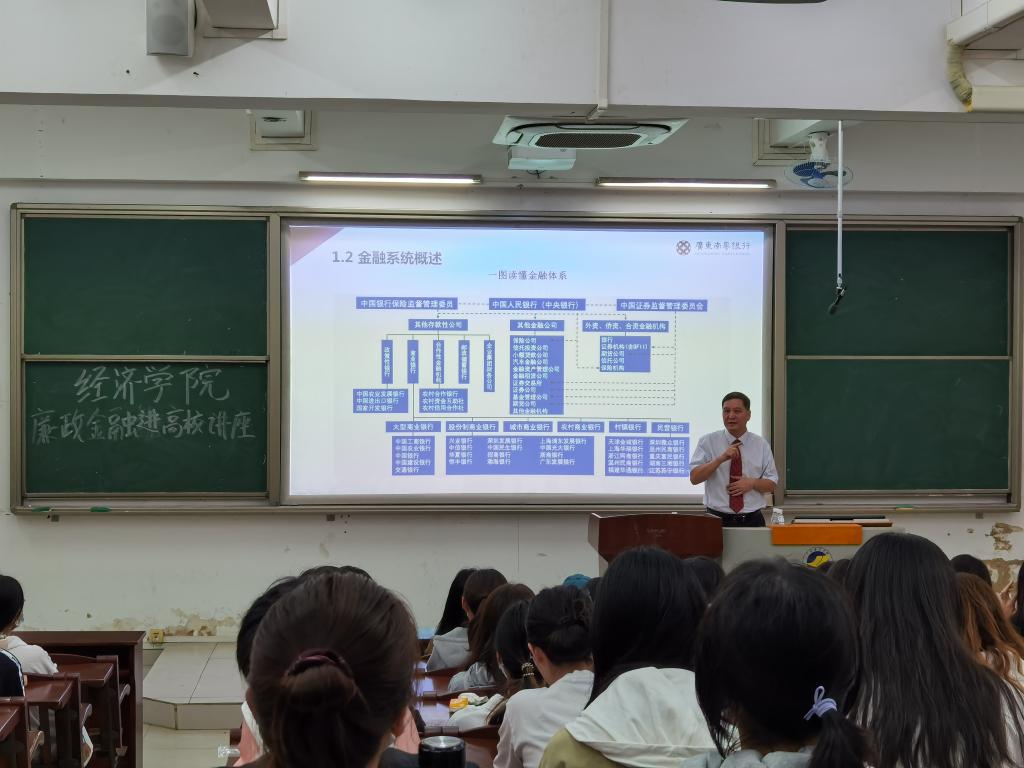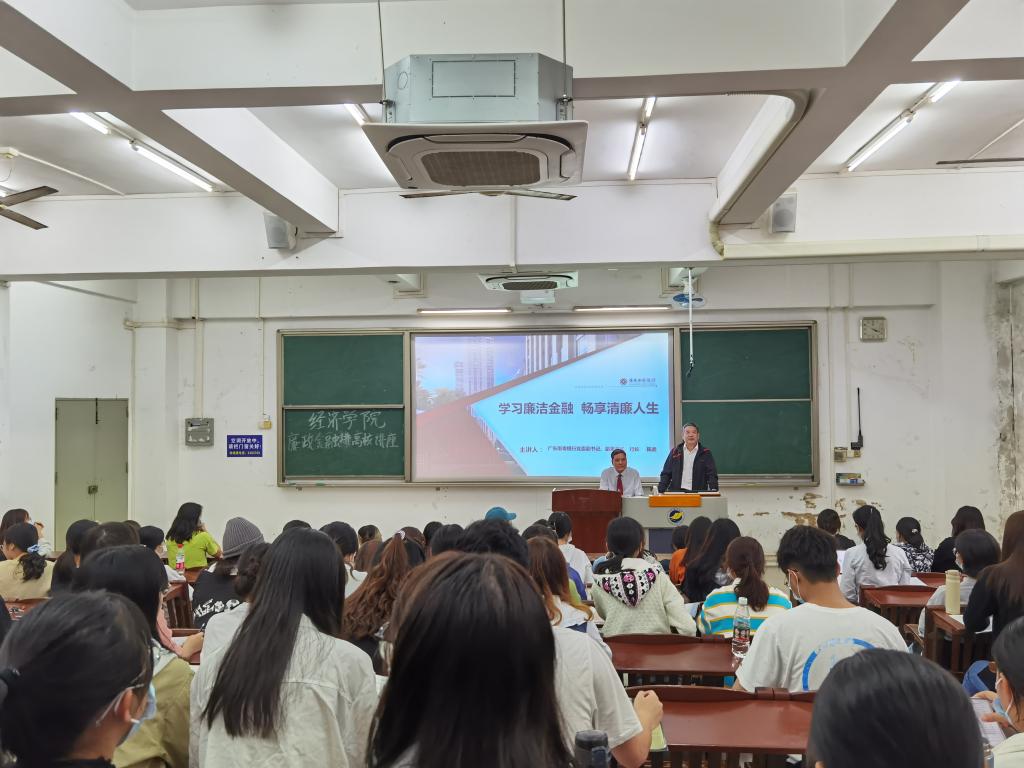 为深入开展清廉金融文化建设,构建清廉金融文化生态,进一步引导学生走好未来人生职业发展之路,10月13日下午,湛江银保监分局与william威廉中文官网在湖光校区钟海楼03020教室共同举办了一场“清廉金融三课”进高校活动。湛江银行同业公会会长、南粤银行党委副书记、副董事长、行长陈武作《学习廉洁金融,畅享清廉人生》主题报告。学院125名本科生参加,报告会由院长居占杰主持。