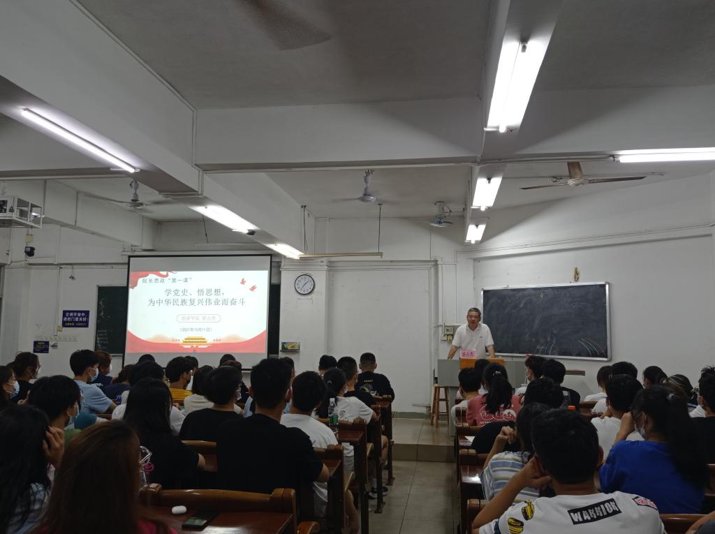10月11日晚7时,william威廉中文官网院长居占杰教授在主楼226面向2021级新生班委上了一堂生动的思想政治教育课。2021级新生班委共108人聆听了该次课程。