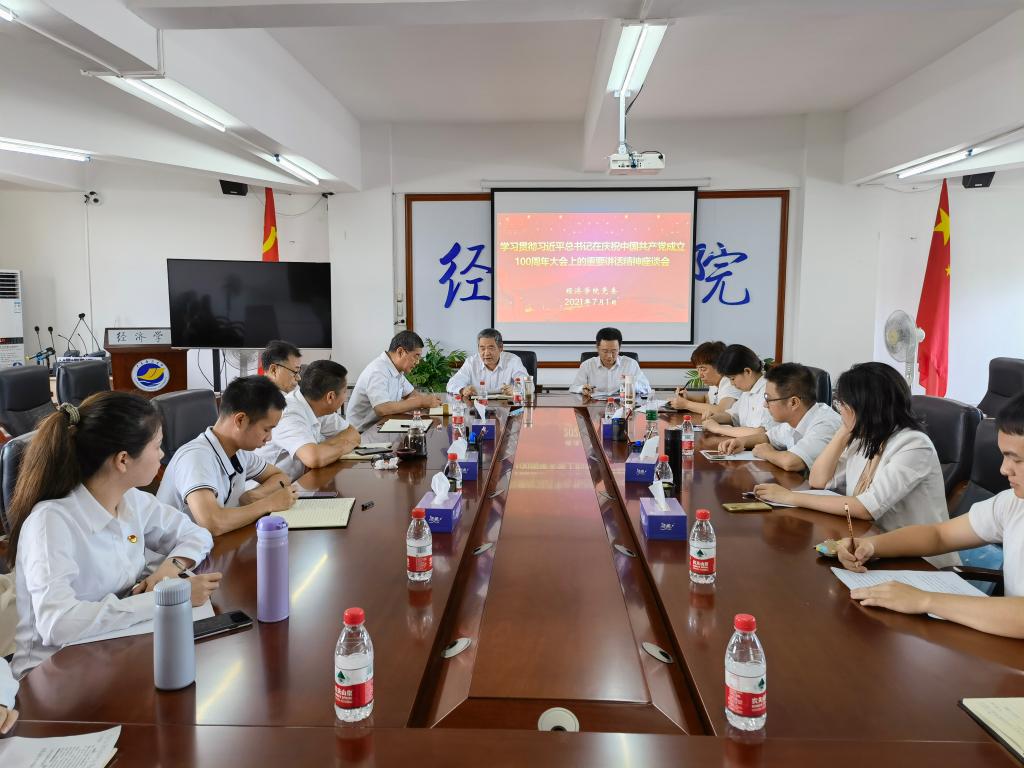会上,肖文辉首先领学了习近平总书记在庆祝中国共产党成立100周年大会上的重要讲话精神,并作了交流发言。随后,与会人员围绕习近平总书记重要讲话精神,结合自身工作、学习和生活实际,紧扣“同庆百年华诞,共铸历史伟业”,畅谈“学党史、感党恩、听党话、跟党走”的心得体会,展望美好未来。肖文辉在总结中强调,要求各基层党支部以“三会一课”和主题党日活动、学院团委以“三会两制一课”和主题团日活动等多种形式,结合党史学习教育专题学习,及时跟进学习习近平总书记重要讲话精神,推动学习贯彻工作走深走实并取得良好的成效。