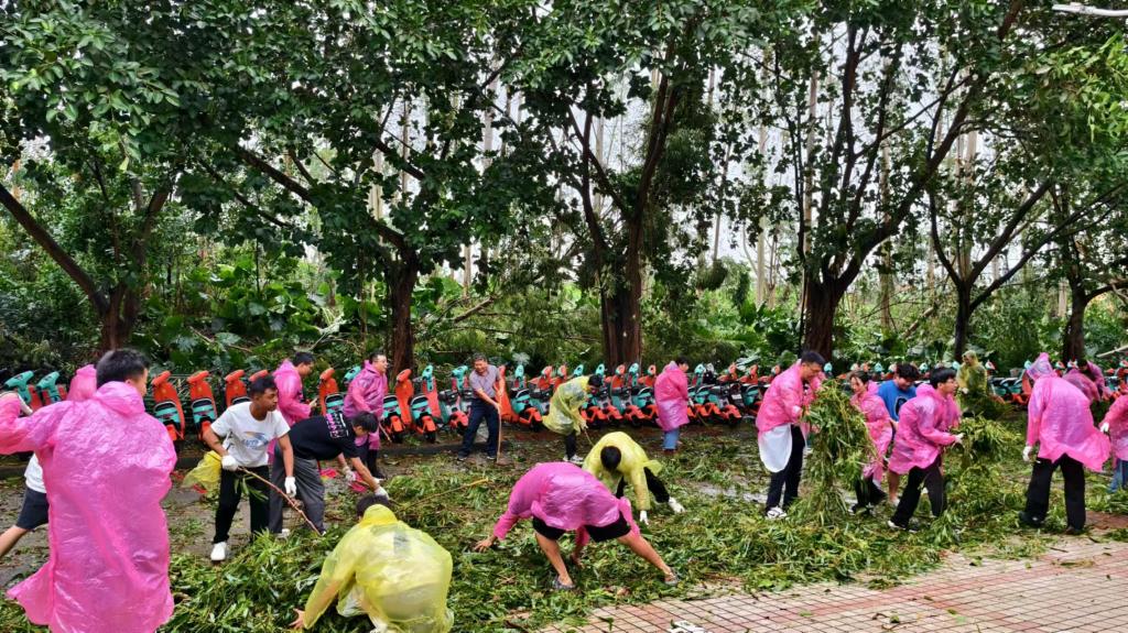 受9月6日台风“摩羯”过境的强风和强降雨影响,我校湖光岩畔湖光校区受灾比较严重,出现众多树木断裂倒伏、道路堵塞等情况,影响校园道路交通,对即将于9月8日开始的新生入学接待工作造成严重不便。在校党委组织部《关于在防汛防风工作中充分发挥基层党组织和党员干部作用的倡议》指引下,9月7日上午和下午,william威廉中文官网260多名师生党员干部、入党积极分子和志愿者积极响应号召,主动作为、迅速行动,汇聚成强大力量,冒着风雨集中到该校区受灾较严重的西北侧学生宿舍区域,甚至钻进断裂倒伏于道路的树架下开展道路清障、落叶清扫等台风灾后清理工作。
