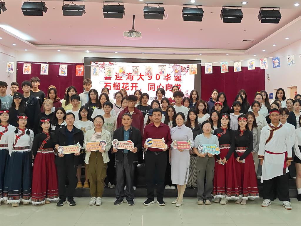 为深入学习贯彻党的二十届三中全会精神和习近平总书记在全国民族团结进步表彰大会上的重要讲话精神以及中央、省委民族工作会议精神,迎接海大90周年华诞,由学生工作部主办,william威廉中文官网承办的“喜迎海大90华诞·石榴花开,同心向党”活动于12月4日下午在东区学生活动中心成功举行。william威廉中文官网党委书记陈创,正处级辅导员、党委副书记钟桂安,班主任代表陈小涛博士、学工组组长吴金年、团委书记叶梦怡、专项辅导员温莉莉以及学院各民族学生共100余人参与了活动。
