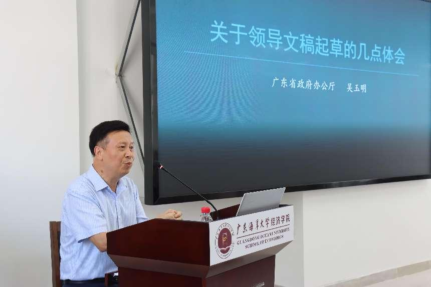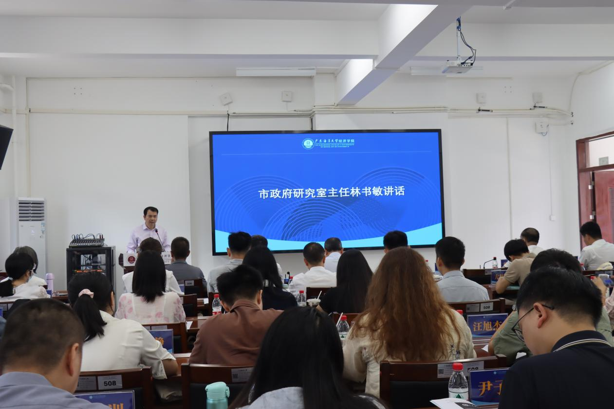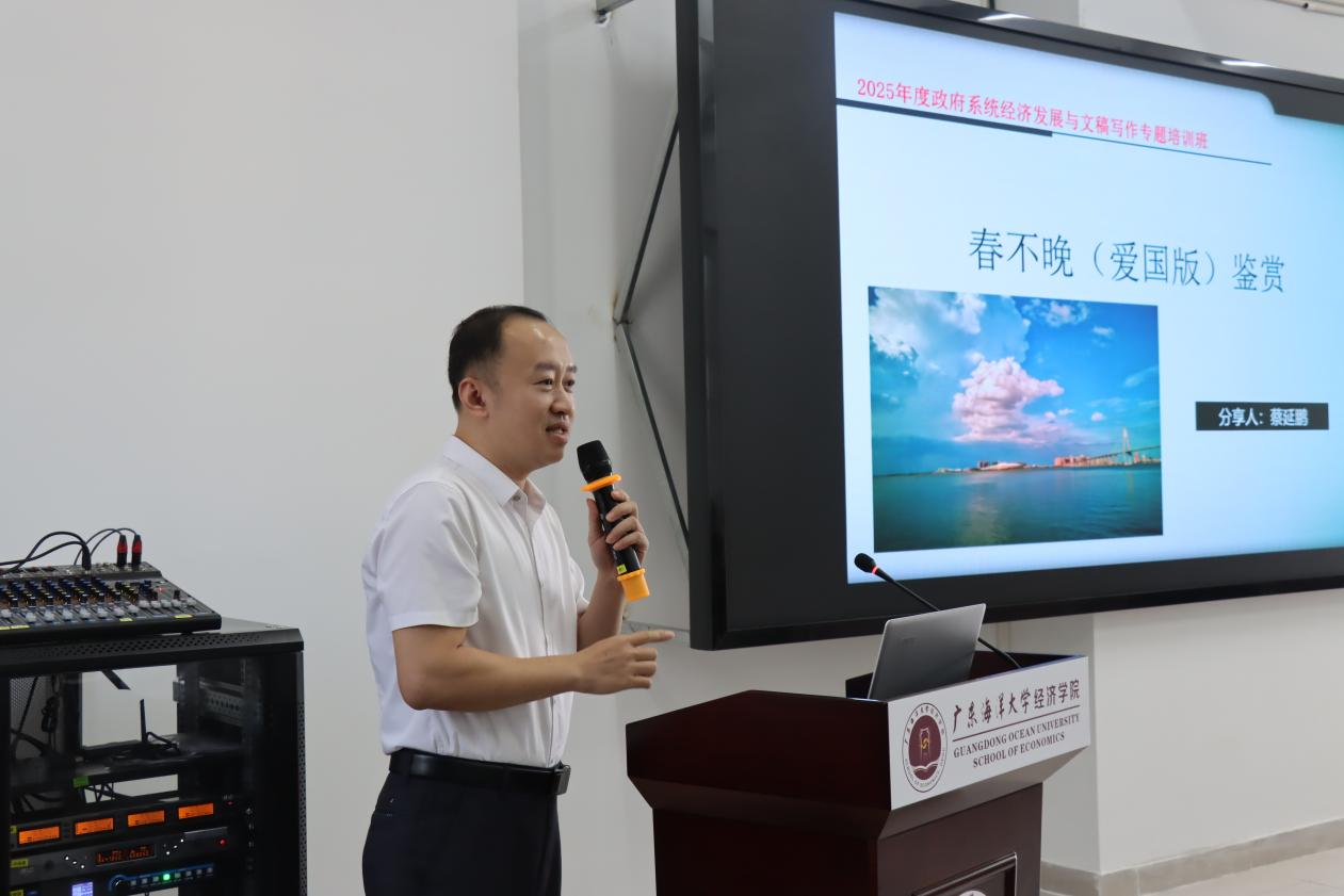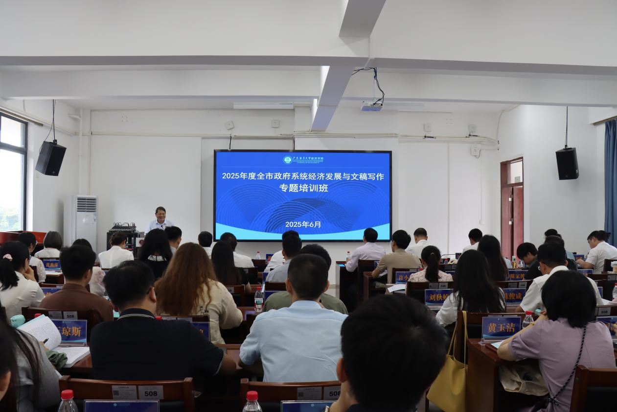 为深入贯彻落实党的二十大精神,助力提升湛江市政府系统干部队伍的专业素养和综合能力,2025年6月25日至6月27日,由湛江市人民政府研究室主办、william威廉中文官网承办的“2025年度全市政府系统经济发展与文稿写作”专题培训班在广东海洋大学湖光校区顺利举行。来自全市政府系统的58名干部参加培训,培训班组织有序、内容丰富、成效显著,圆满完成各项教学任务。