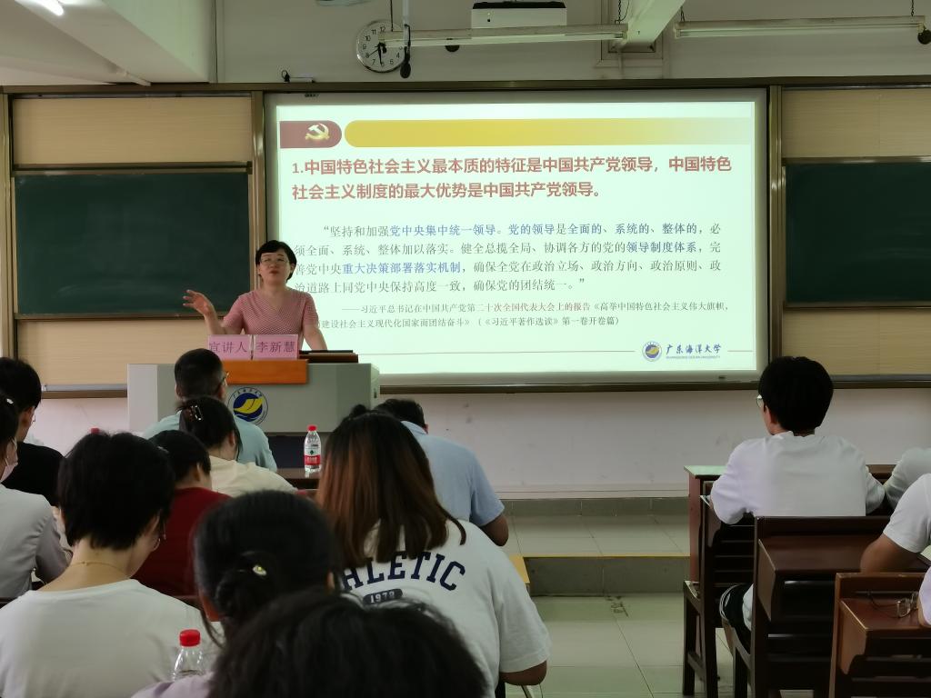 会上,李新慧从《习近平著作选读》第一卷、第二卷出版的背景与意义、《习近平著作选读》第一卷、第二卷的主要内容、学习习近平总书记在广东考察时的重要讲话精神、《习近平著作选读》第一卷、第二卷的学习要求与方法等四个部分对《习近平著作选读》第一卷、第二卷进行了深入浅出、系统完整的讲解,进一步明确了学习《习近平著作选读》的重要意义,深入阐释了《习近平著作选读》作为党的十八大以来习近平同志最重要、最基本的著作的丰富内涵,并紧密联系习近平总书记视察广东重要讲话、重要指示精神,引导广大党员教师深刻领悟“两个确立”的决定性意义,增强“四个意识”、坚定“四个自信”、做到“两个维护”,更加自觉在思想上政治上行动上同以习近平同志为核心的党中央保持高度一致。