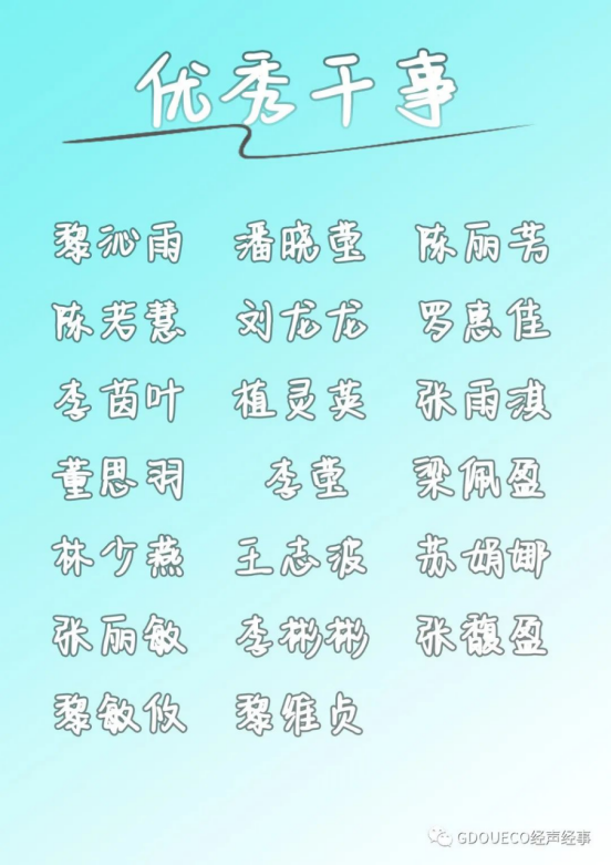 表彰以下干部,在他们任期内带领学院团学获得先进基层团委、先进基层学生会。