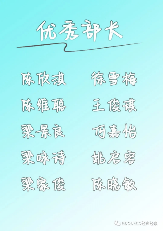 优秀部门、优秀部长及优秀干事名单公示