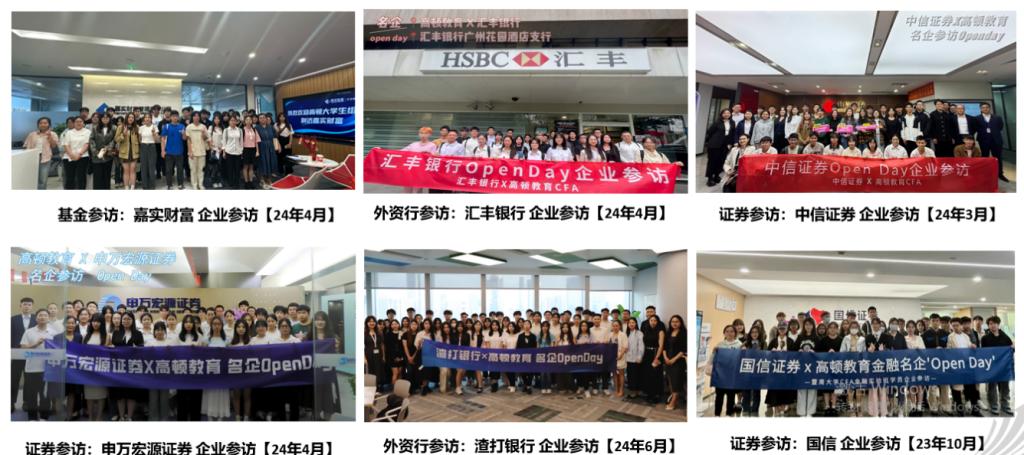 所有CFA菁英班学员大一、大二期间,享有金融名企参访及实践机会,邀请行业高管,资深金融分析师、顾问对学员进行专业知识的实践授课,化理论为实践!