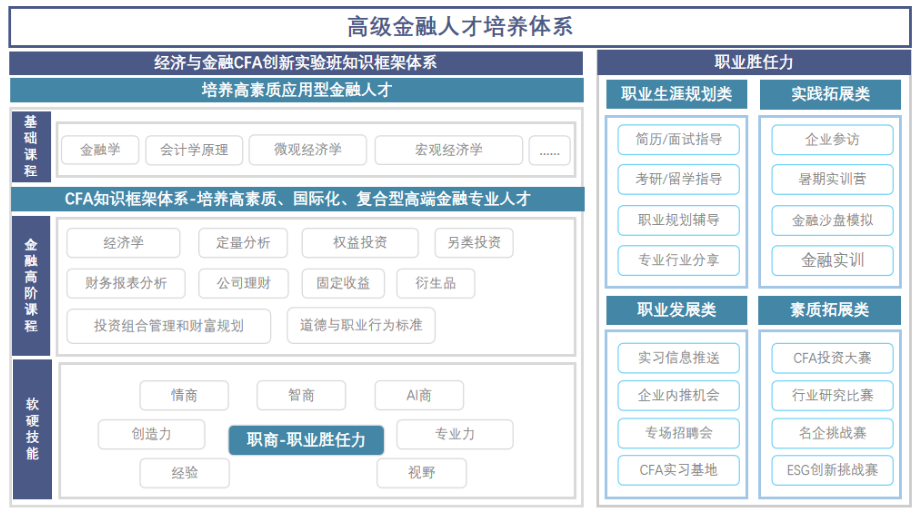 为响应国家教育强国目标和国家人才战略部署,为适应社会经济建设与发展,为顺应新时代金融人才发展要求,为培养新时代高素质、国际化、应用型金融人才,结合特许金融分析师(Chartered Financial Analyst,CFA)国际执业资格认证先进且前沿的课程体系,广东海洋大学经济学院于2025年特开设经济与金融专业CFA创新实验班。