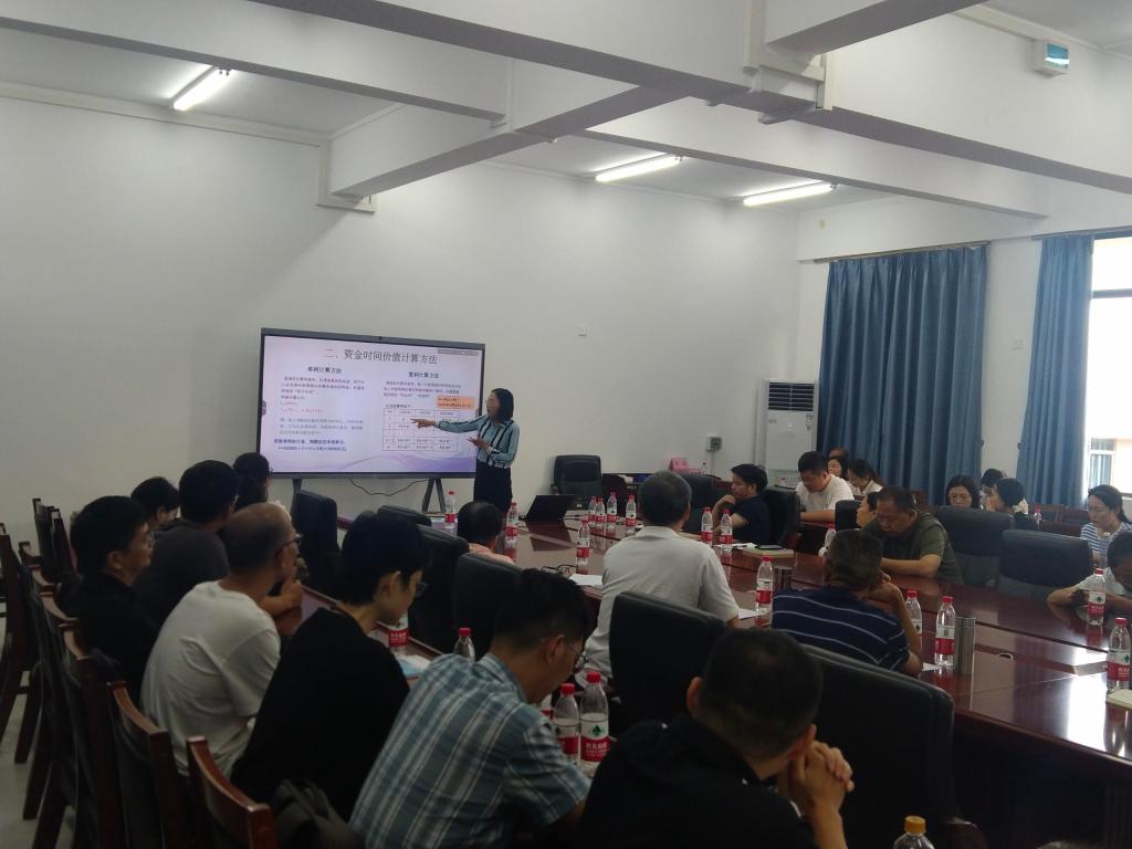 参赛教师徐玉威以主讲课程《固定收益证券》-“资金的时间价值”为内容展示了说课、课堂教学等环节。学校本科教学督导杨丽华副院长进行了点评,对参赛教师的课程教学设计、案例导入、课程思政、课堂互动等给予充分的肯定,也对课件设计、多元化案例呈现等提出提升的建议。