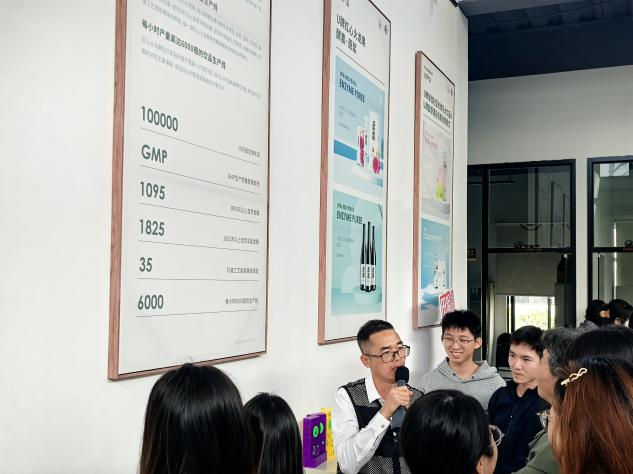 在广东南国药业有限公司,同学们先在药品展示室了解了该企业生产的药品和功能,后四个班共分为四组到生产车间了解药品生产过程。车间有严格的程序,在药品售卖前需要经过投料→水提取→储罐储藏→浓缩→制成打包前处理→剪切室→存放药材的步骤,才能最后上市。讲解员向学生们详细介绍了各个步骤的操作,同学们都受益匪浅。