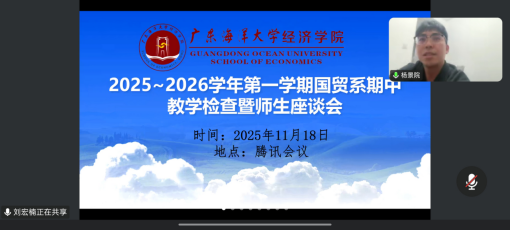 国贸系于2025年11月18日20:00至22:30通过腾讯会议(会议号:111-202-288)组织召开了2025-2026学年第一学期期中师生座谈会。会议由院领导、系正副主任、全系教师及各班级学生代表(包括班长、团支书和学习委员)共同参与。此次会议是为了加强师生沟通,凝聚共识,围绕学风建设与教学改进等议题展开深入交流。