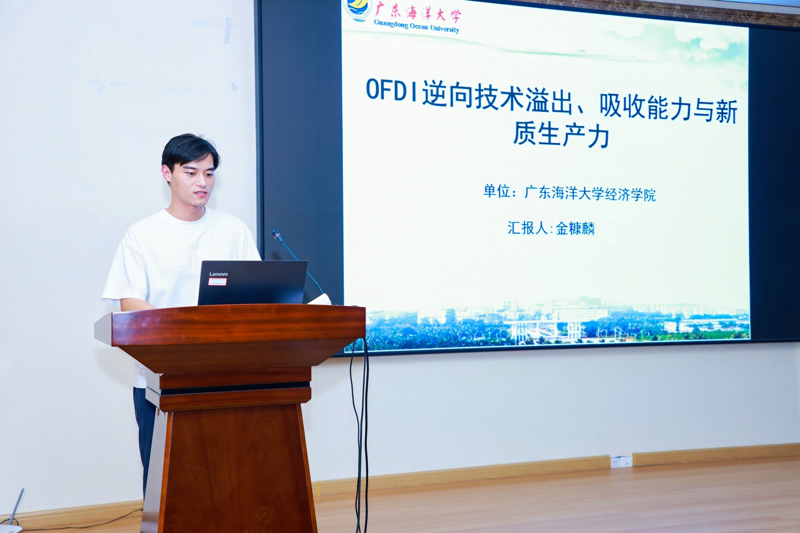 在论坛中,由杨丽华、王康、金糠麟共同撰写的论文《OFDI逆向技术溢出、吸收能力与新质生产力》被正式采纳,并由应用经济学专业的金糠麟同学代表团队,在“平行论坛一:高水平开放下的对外直接投资”进行学术报告。