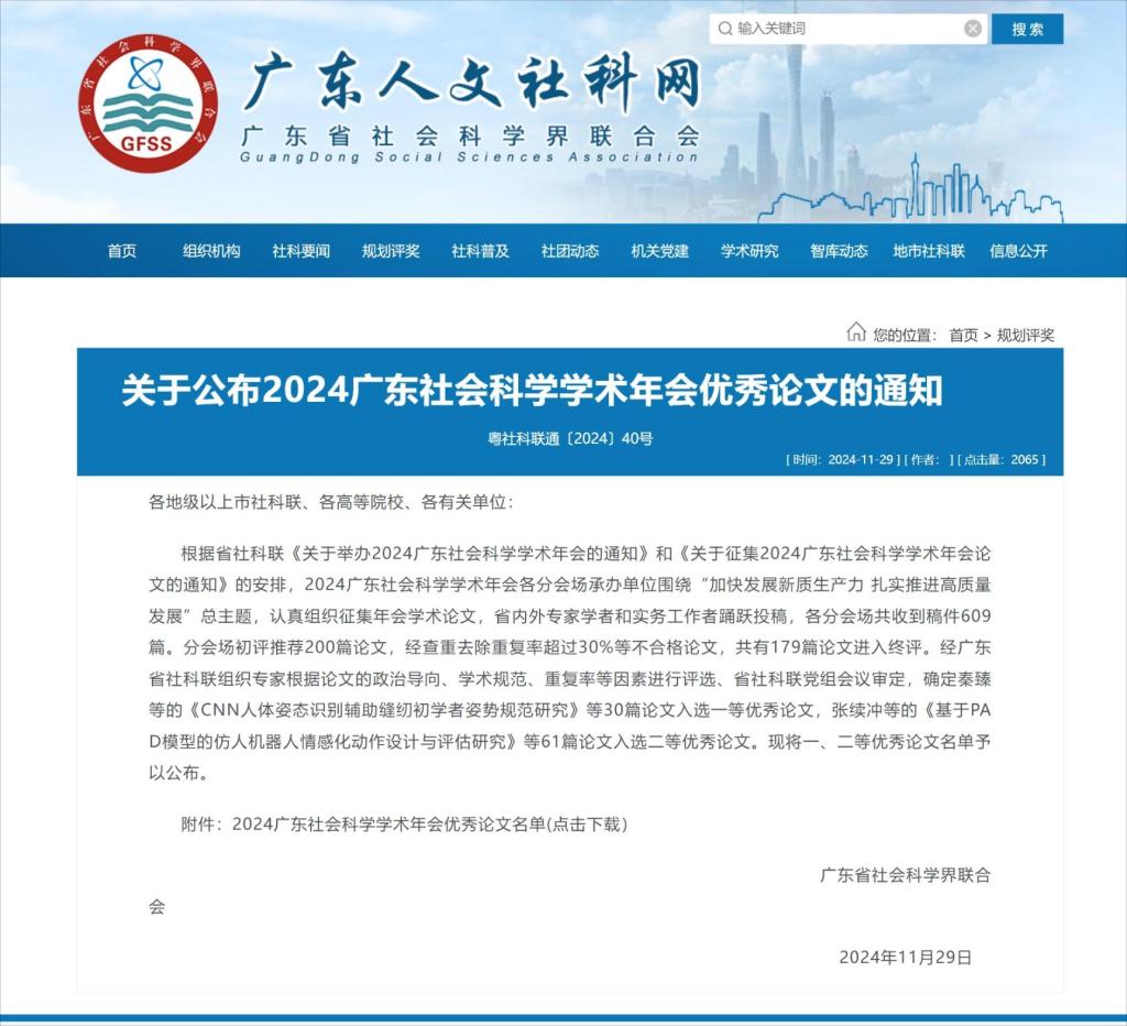 广东社会科学学术年会是由广东省社会科学界联合会主办的大型学术活动,是我省哲学社会科学领域的重要学术平台,2024年广东社会科学学术年会紧紧围绕“加快发展新质生产力,扎实推进高质量发展”这一主题,致力于为广东在推进中国式现代化建设中走在前列提供理论支撑和智力支持。
