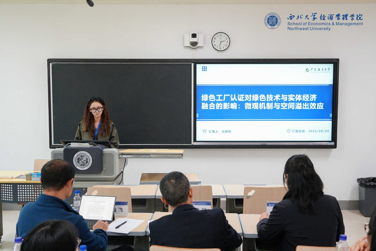 我院吕晶晶老师团队提交的论文《绿色工厂认证对绿实技术融合的影响:微观机制和空间溢出效应》成功入选,并由研究生翁锦娜代表团队在分论坛上进行汇报。该研究立足“双碳”战略背景,重点探讨绿色工厂认证对绿色技术与实体经济融合的微观机制及其空间溢出效应,进一步厘清了其作用路径与跨区域增益机制。翁锦娜同学汇报内容受到与会专家的肯定,收获了专家们的宝贵的意见,为该研究的进一步完善提供了重要参考。