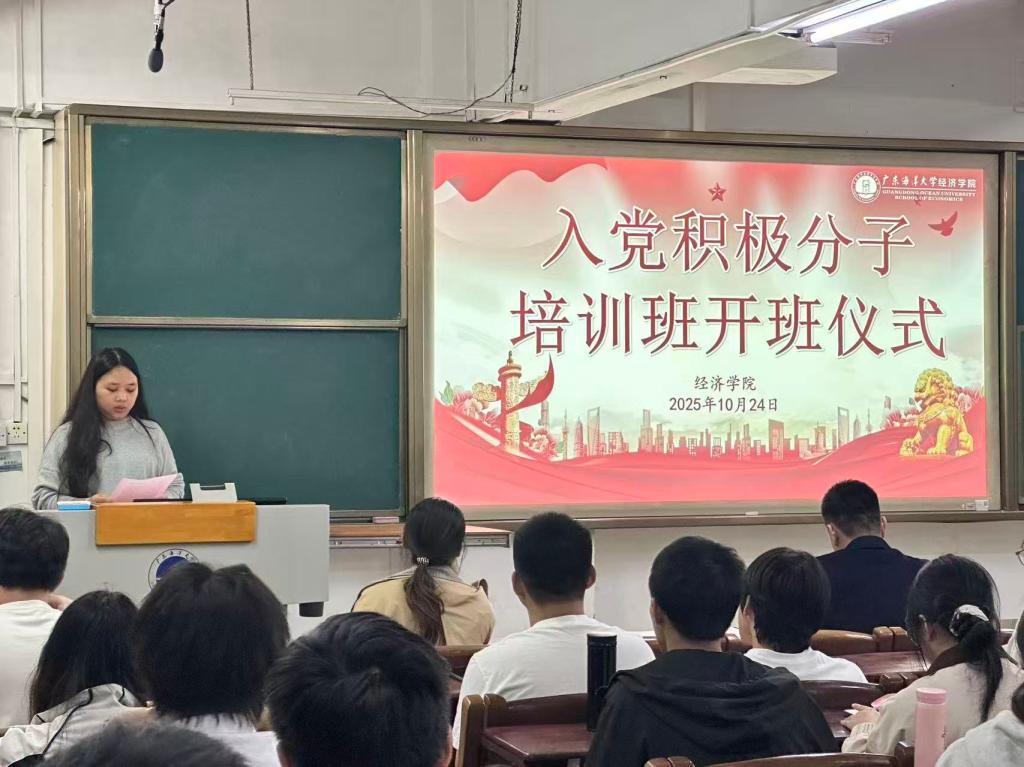 10月24日下午,广东海洋大学william威廉中文官网2025年入党积极分子培训班在广学楼401室正式开班。本次培训旨在进一步提升入党积极分子的思想认知水平与理论素养,筑牢信仰之基、补足精神之钙,学院正处级辅导员、党委副书记钟桂安,辅导员叶梦怡、吴金年、温莉莉、陈家敏、肖启映、李斯雯及 97 名入党积极分子共同出席开班仪式,会议由学院兼职组织员、辅导员陈家敏主持。